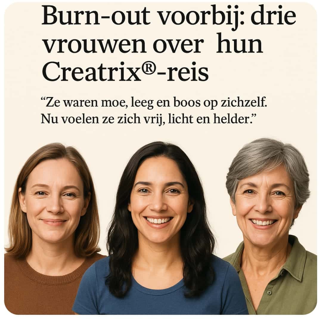 Burn-out voorbij: drie vrouwen over hun Creatrix®-reis. Dit is een verhaal van moed, verandering en echte bevrijding. In deze blog delen we drie krachtige getuigenissen van vrouwen die het dieptepunt van burn-out bereikten, en via Creatrix® weer thuiskwamen bij zichzelf. Geen oppervlakkige quick fix, maar een blijvende transformatie van binnenuit.